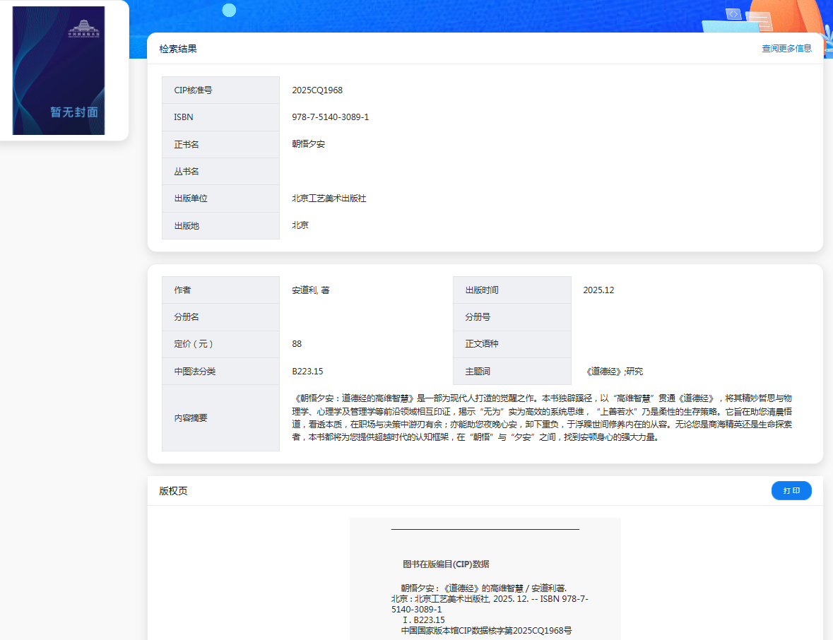 明翊书业新书出版《朝悟夕安:道德经的高维智慧》
