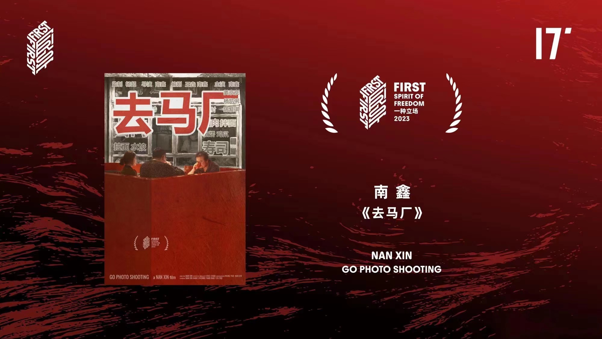 南鑫导演作品《去马厂》获得第十七届FIRST青年电影展一种立场,由FIRST主竞赛评委会评委沈暘、FIRST影展创始人宋文共同颁布荣誉。