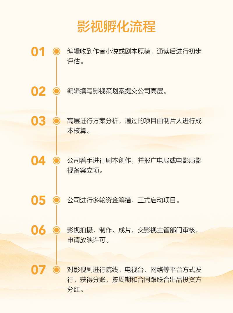 明翊影业面向全社会征集优质小说和剧本进行影视孵化。现有《去马厂》《田园将荒》《一号特工》等影片代表作。